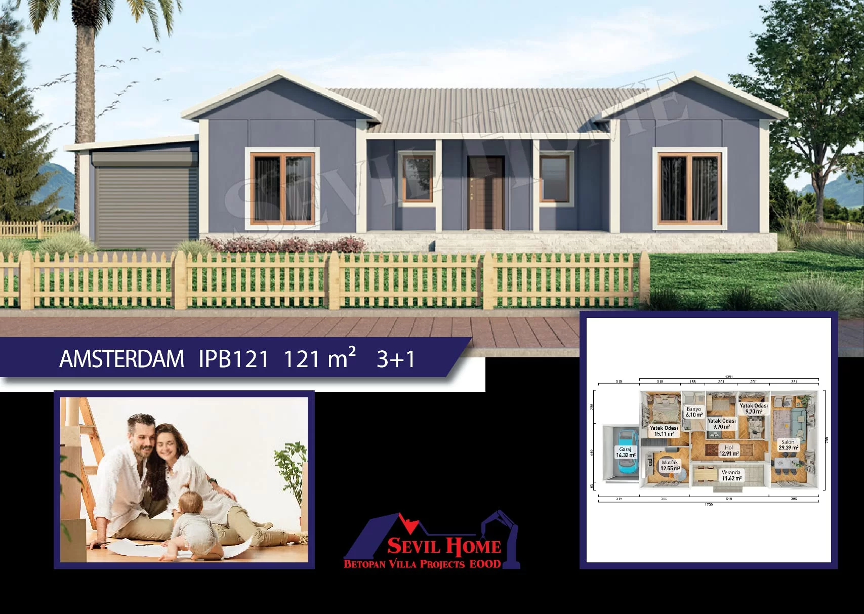 AMSTERDAM Prefabrik Projemiz 121 m² Kare Olup Toplam Fiyati: 35.090 €'dur,