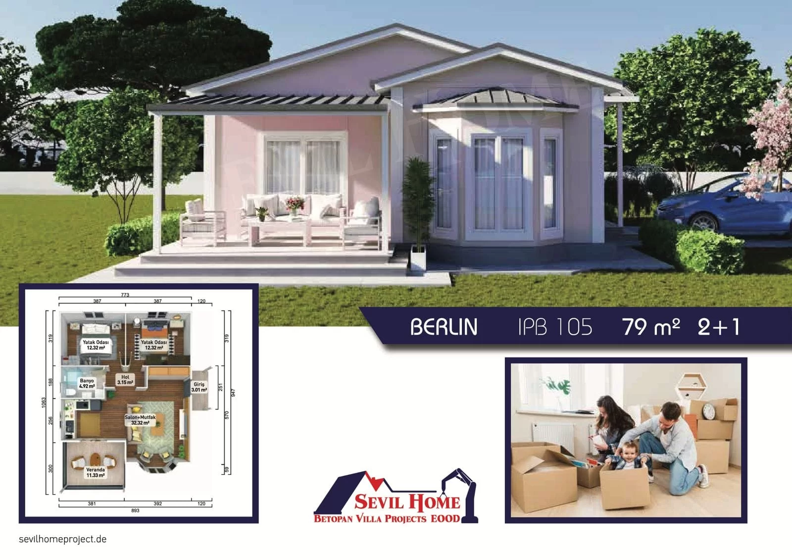 BERLIN Prefabrik Projemiz 79 m² Kare Olup Toplam Fiyati: 22.910 €'dur,