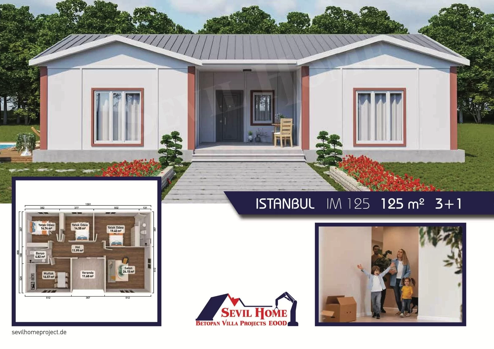 ISTANBUL 1 Prefabrik Projemiz 125 m² Kare Olup Toplam Fiyati: 36.250 €'dur,