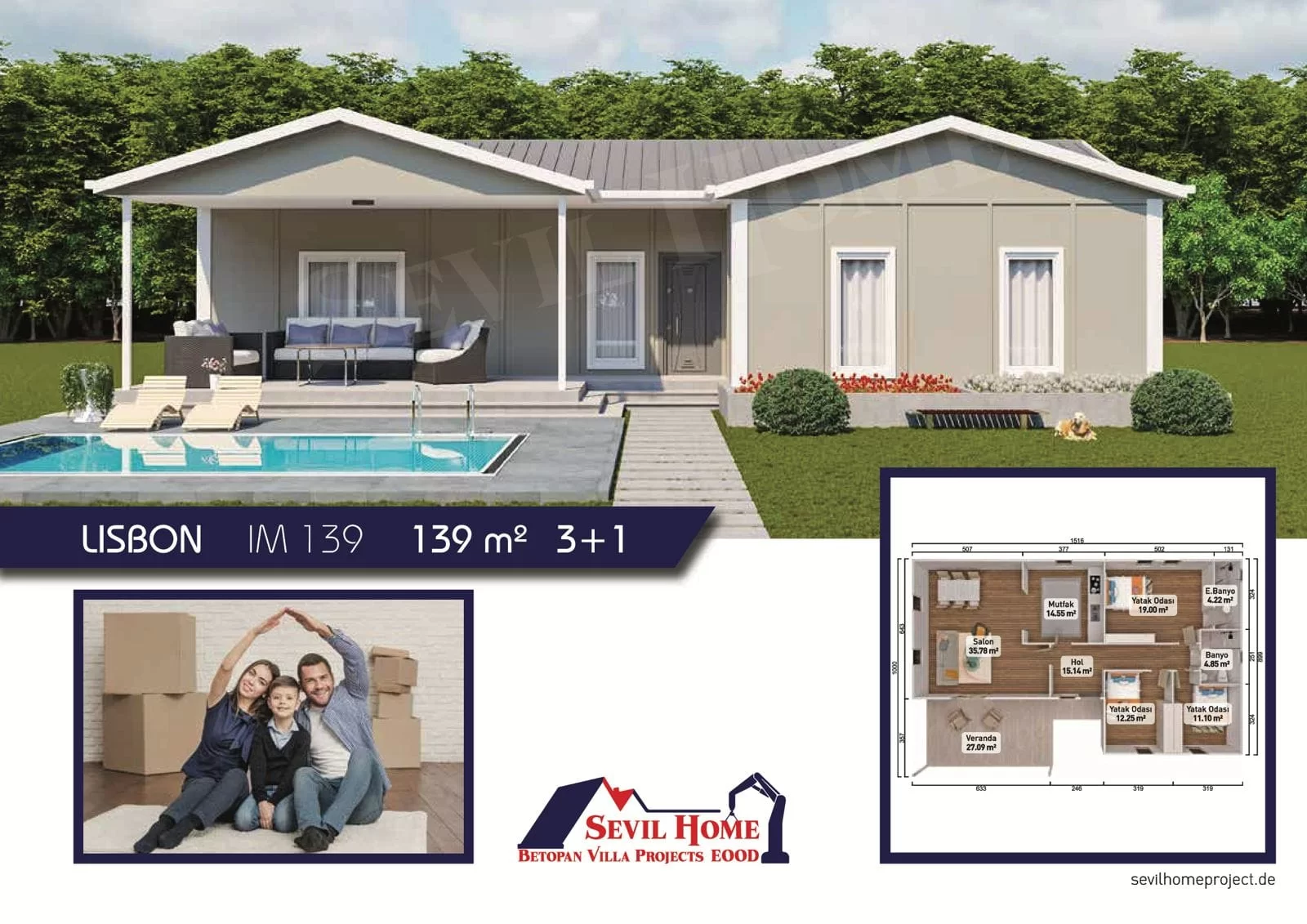 LISBON Prefabrik Projemiz 139 m² Kare Olup Toplam Fiyati: 40.310 €'dur,