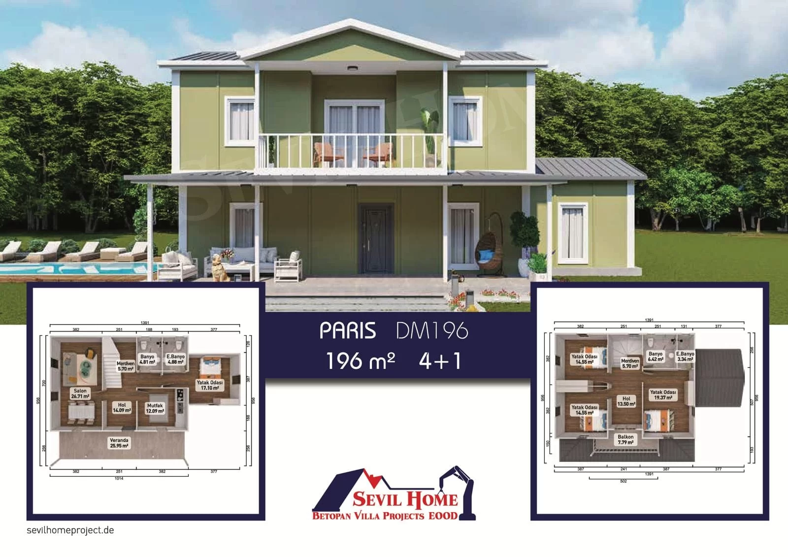 PARIS Prefabrik Projemiz 196 m² Kare Olup Toplam Fiyati: 56.840 €'dur,