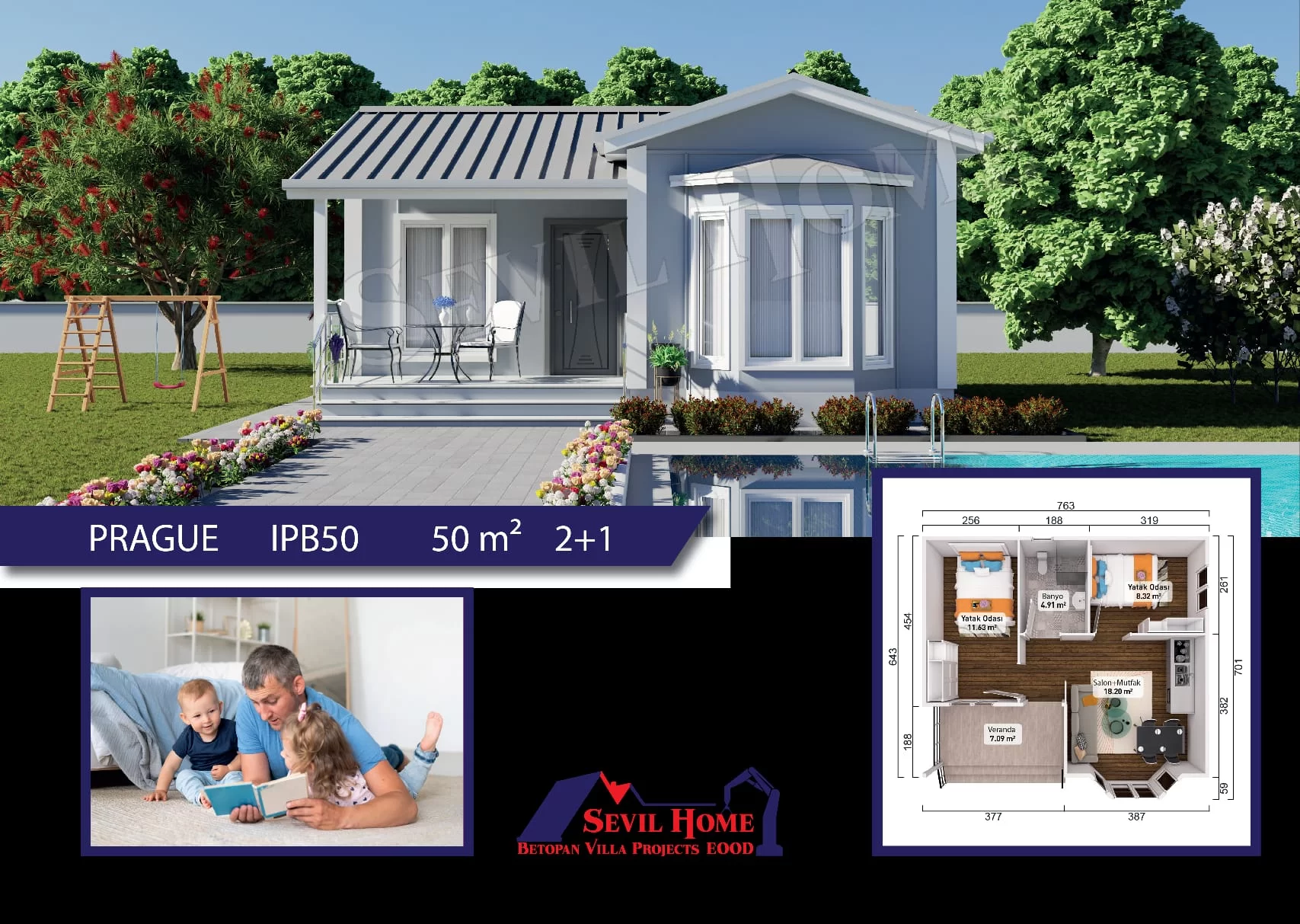 PRAGUA Prefabrik Projemiz 50 m² Kare Olup Toplam Fiyati: 14.500 €'dur,